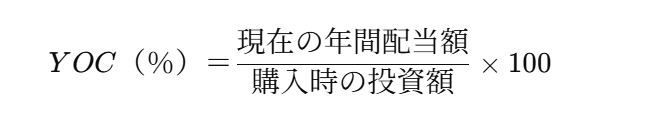 YOC(Yield on Cost)= 購入時の投資額に対して、現在の配当金がどれくらいの割合かを示す指標です。
